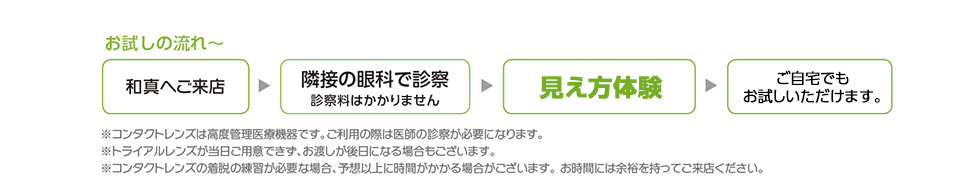 ■お試しは、隣接眼科のあるコンタクトレンズ取扱い店で承っております。