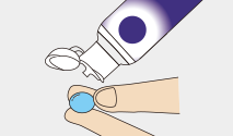 洗浄保存液をレンズに5~6滴たらし、指の腹で軽くこする様にして約15秒間レンズの両面をていねいに洗浄します。