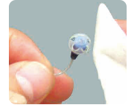 柔らかい布で耳せんの汚れをふき取ります。※耳せんは消耗品です。3ヶ月を目安に交換をおすすめします。