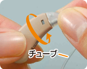 チューブを反時計方向にまわして、補聴器から取り外します。